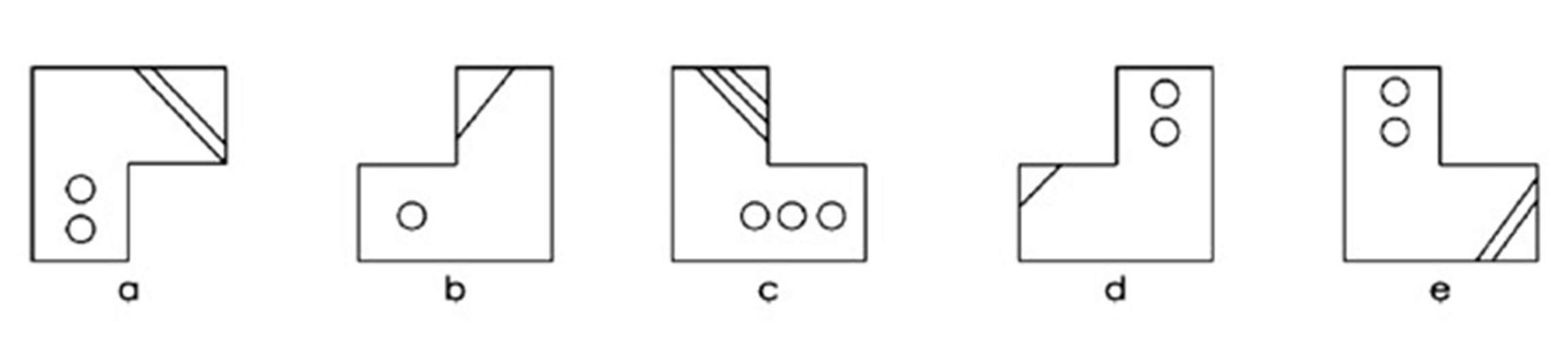 These types of questions require you to identify the similarities between a set of figures, and then identify the figure that is therefore different.